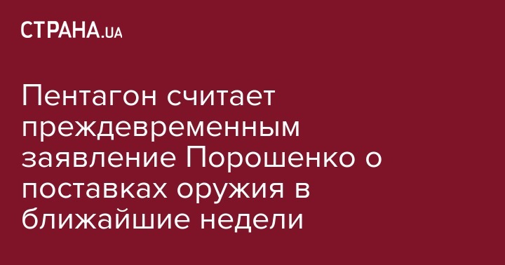 В Минобороны США считают преждевременным заявления президента Петра Порошенко о поставках американского оружия в ближайшие недели.