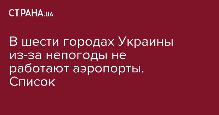 В Украине по состоянию на 13:30 из-за сложных погодных условий не работают аэропорты в шести городах: Виннице, Днепре, Запорожье, Кривом Роге, Полтаве и Сумах. Об этом сообщает ГосЧС.