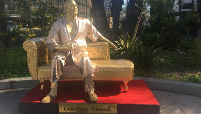 Перед церемонией вручения "Оскара" в Голливуде появилась золотая статуя продюсера Харви Вайнштейна, который сидит на "диване для кастинга".