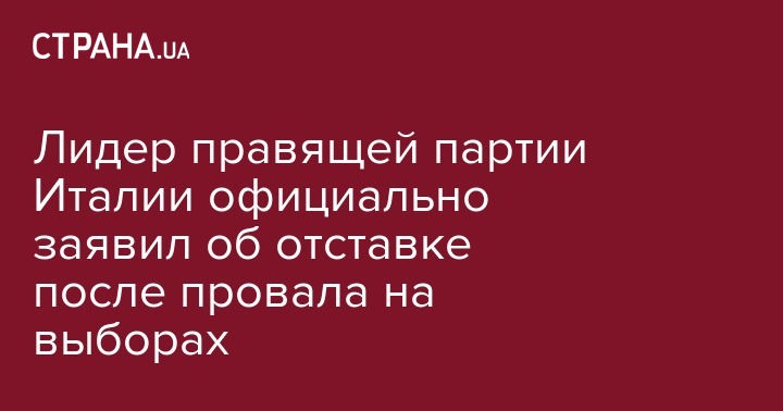 Лидер правящей партии Италии официально заявил об отставке после провала на выборах
