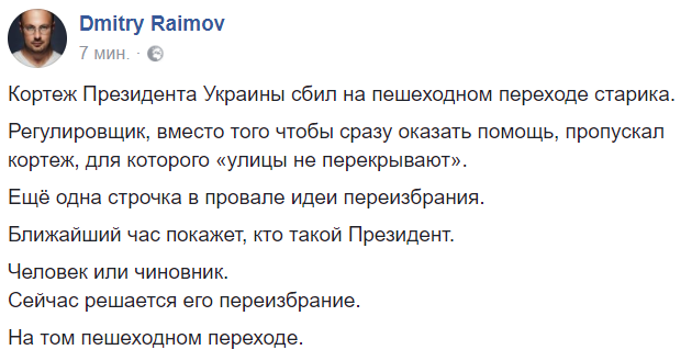 "Кортеж Президента Украины сбил на пешеходном переходе старика.