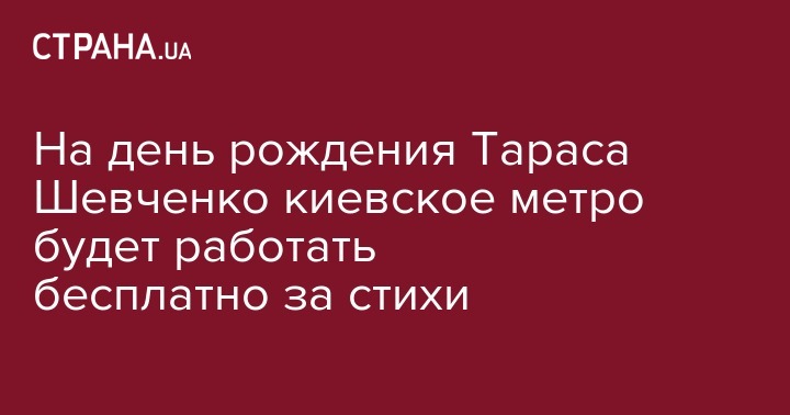 На день рождения Тараса Шевченко киевское метро будет работать бесплатно за стихи