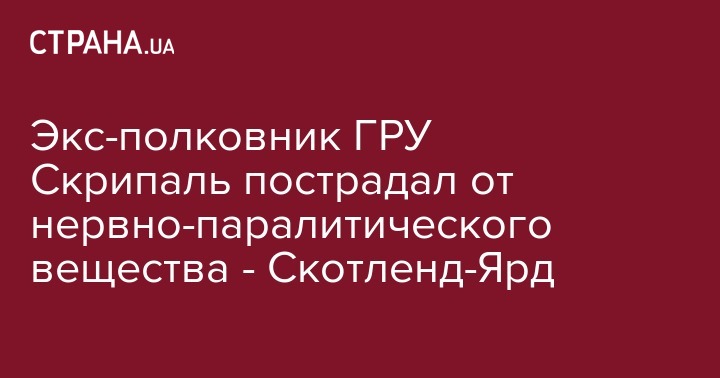 Экс-полковник ГРУ Скрипаль пострадал от нервно-паралитического вещества - Скотленд-Ярд