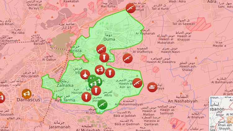 Ранее сирийским войскам удалось отбить населенные пункты Аш-Шари и Бейт Сава в Восточной Гуте. В настоящее время они близки к тому, чтобы "разрезать" силы своих противников в этом анклаве на две части.