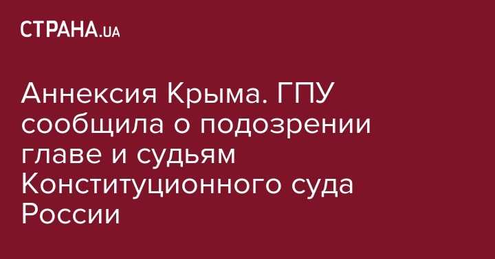 "Судьи КС РФ, действуя по предварительному сговору группой с представителями власти и Вооруженных Сил РФ, как пособники в совершении последним посягательств на территориальную целостность и неприкосновенность Украины, грубо пренебрегая порядком рассмотрения и требованиями российского законодательства и международных обязательств Российской Федерации, единогласно признали таким, что вроде бы соответствует Конституции РФ ничтожный "договор" между Российской Федерацией и так называемой "республикой Крым" о принятии в состав РФ этого квазобразования", - заявили в ГПУ, добавив, что судьи выносили решения в спешке по просьбе президента РФ.