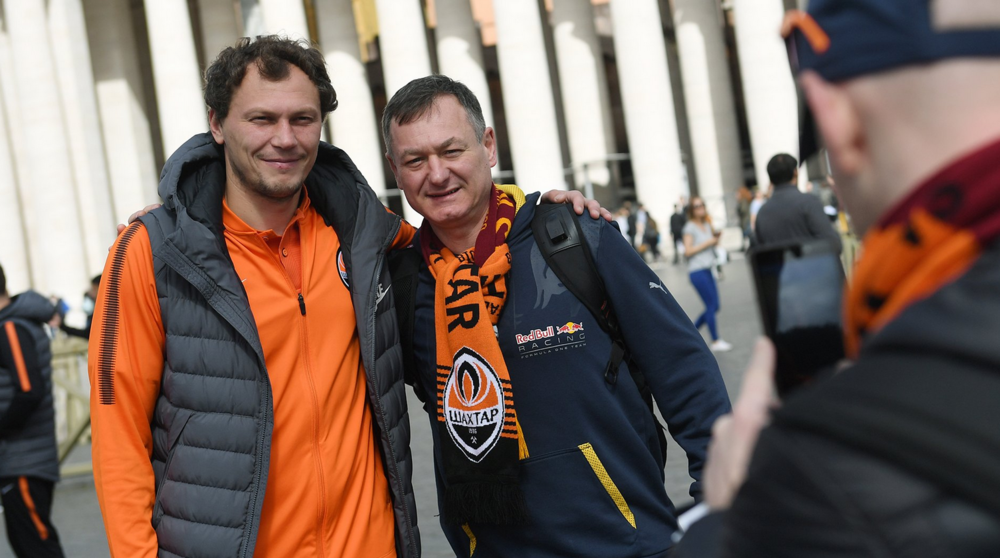 Сегодня, 13 марта, донецкий Шахтер сыграет с Ромой ответный матч 1/8 Лиги чемпионов. После обеда команда вышла на традиционную прогулку по городу, и болельщики не упустили своего шанса сделать совместные фото с любимыми игроками.
