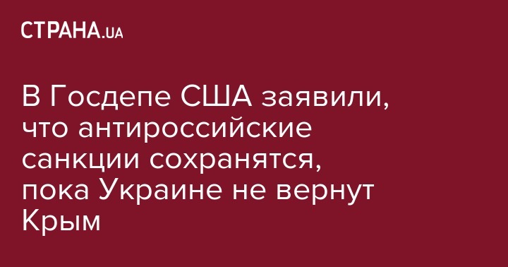 Представитель Госдепартамента США Хизер Нойерт заявила, что санкции против России сохранятся до возвращения Крыма Украине.