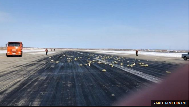 При этом одни издания сообщают, что на полосу выпали слитки золота, другие пишут, что на борту находились слитки серебра. Часть груза оказалась на взлетно-посадочной полосе.