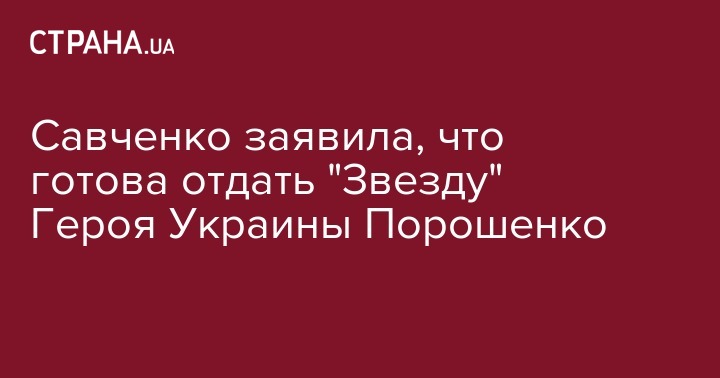 Нардеп Надежда Савченко, которую обвиняют в подготовке госпереворота, заявила, что готова отдать Звезду Героя Украины Петру Порошенко.