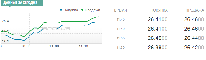 Доллар - 26,35-26,40 гривны;