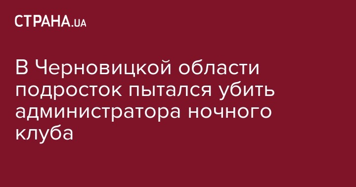 В Черновицкой области 16-летний подросток пытался убить женщину-администратора одного из ночных клубов. Он взят под стражу. Задержанному сообщено о подозрении в совершении покушения на убийство.