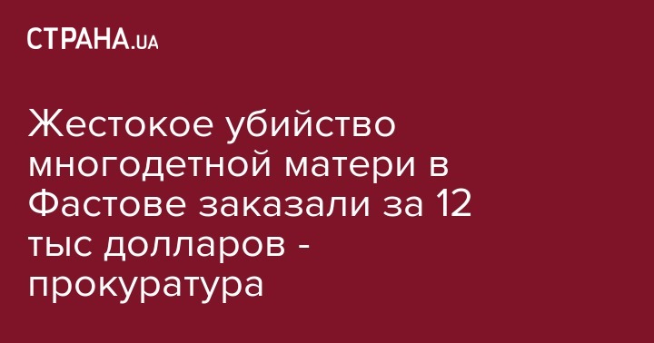 Заказчики убийства многодетной матери в Фастове Киевской области оценили совершения преступления в 12 тысяч долларов. Об этом на брифинге сообщил прокурор Киевской области Дмитрий Чибисов, передает УНН.