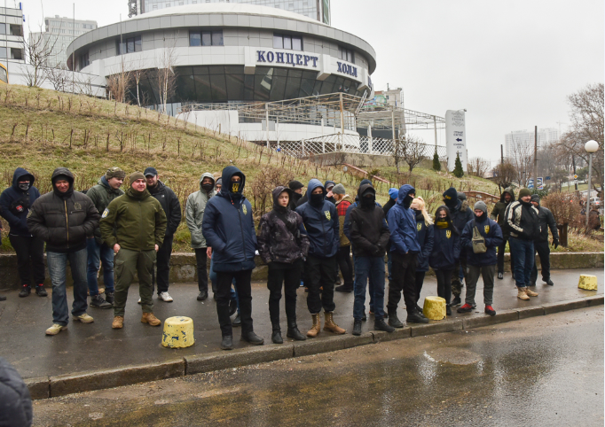 Рядом с российским дипведомством находятся представители националистических организаций, которые блокируют подходы к генконсульству РФ.