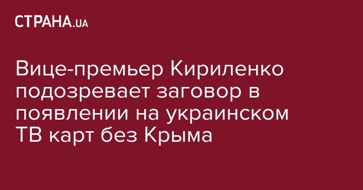 Вице-премьер Украины Вячеслав Кириленко считает, что появление в эфире общенациональных телеканалов изображения карты Украины без Крыма - "не случайность, а чья-то целенаправленная работа". Об этом он написал в микроблоге Twitter.