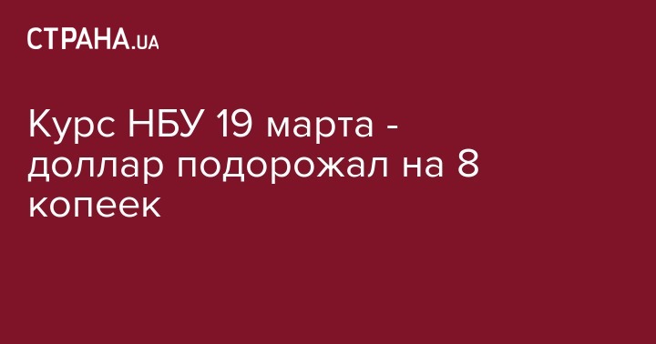 В понедельник, 19 марта Нацбанк установил официальный курс гривны по отношению к иностранным валютам. По сравнению с предыдущим рабочим днем, доллар подорожал, а евро потерял в цене 1 копейку.