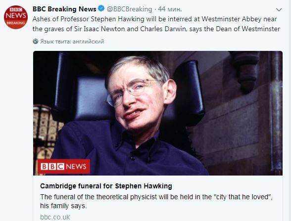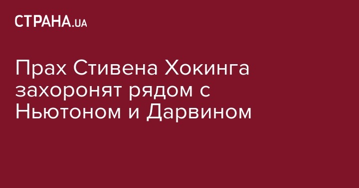 Всемирно известного английского физика-теоретика Стивена Хокинга похоронят в Вестминстерском аббатстве рядом с могилами Исаака Ньютона и Чарльза Дарвина.
