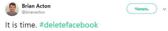Соучредитель WhatsApp Брайан Актон на своей странице в Twitter призвал пользователей удалить аккаунты в Facebook.