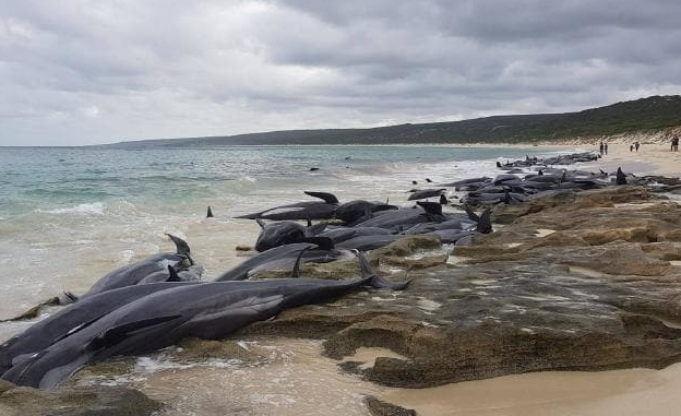 Почти 150 дельфинов-гринд выбросились на берег в заливе Хемелин примерно в 10 км от города Огаста на юго-западе Австралии. Об этом сообщает news.com.au.