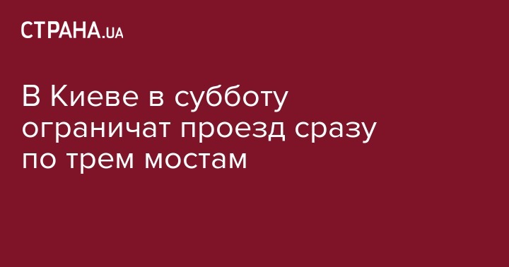 "В частности, будет ограничено движение транспорта в эту субботу: с 10:00 до 16:00 - Северному (Московскому) мосту и мосту через р.Десенка в направлении жилого массива Троещина; с 14:00 до 20:00 - по Южному мосту в направлении центра города; с 14:00 до 20:00 – по мосту Метро через Русановский пролив в направлении центра города", - говорится в сообщении.