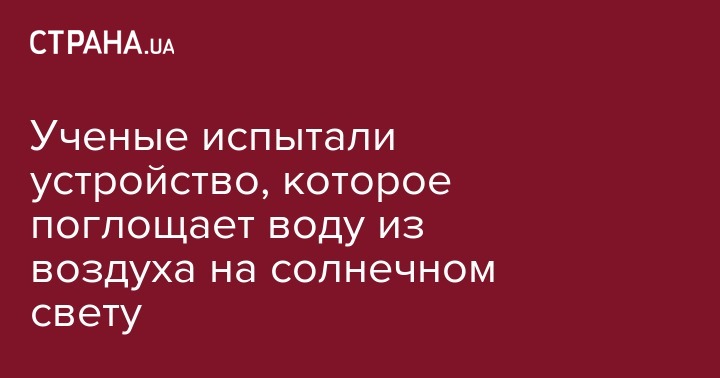 Ученые испытали устройство, которое поглощает воду из воздуха на солнечном свету