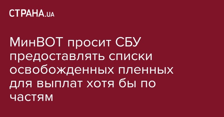 Министерство по вопросам временно оккупированных территорий и внутренне перемещенных лиц (МинВОТ) просит Службу безопасности Украины предоставлять по частям списки освобожденных из плена украинских военных.