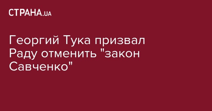 Георгий Тука призвал Верховную Раду пересмотреть "закон Савченко" о зачислении судом предварительного заключения в срок наказания, в соответствии с которым суды должны учитывать осужденным каждый день под стражей, как два дня отбывания наказания. Об этом чиновник написал на своей странице в Facebook.