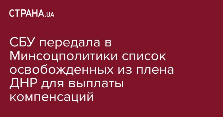 Служба безопасности Украины составила список из 75 фамилий украинцев, освобожденных 27 декабря 2017 года и 24 января 2018 года из плена боевиков "ДНР". Этим людям будет выплачена компенсация по 100 тысяч гривен. Об этом сообщают "Украинские новости", сслылаясь на пресс-службу Министерства социальной политики.