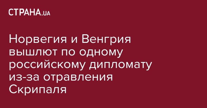 Власти Норвегии и Венгрии выдворят по одному российскому дипломату в связи с отравлением экс-полковника ГРУ Сергея Скрипаля и его дочери Юлии в британском Солсбери, сообщает "Интерфакс" со ссылкой на МИД страны.
