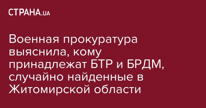 Обнаруженная в Житомирской области военная техника не является боевой, и нет информации, что она была завезена из зоны АТО на Донбассе, заявляет военный прокурор Центрального региона Украины Григорий Рябенко.