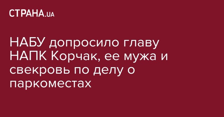 Председателя Национального агентства по предотвращению коррупции (НАПК) Наталью Корчак, ее супруга и свекровь допросили по делу о покупке паркомест и их использования для незадекларированных автомобилей.