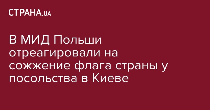 Польский МИД возмущен сожжением польского флага перед посольством Польши в Киеве. В связи с произошедшим 2 апреля был вызван заместитель посла Украины в Польше, ему вручили ноту протеста, говорится в заявлении польского МИД.