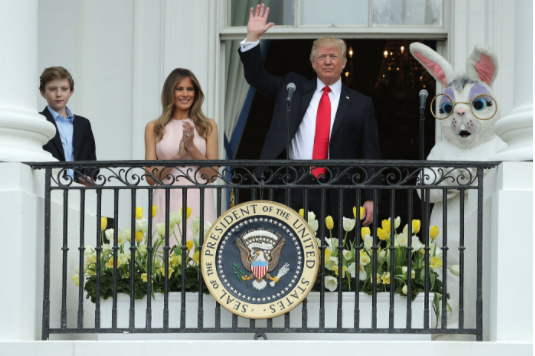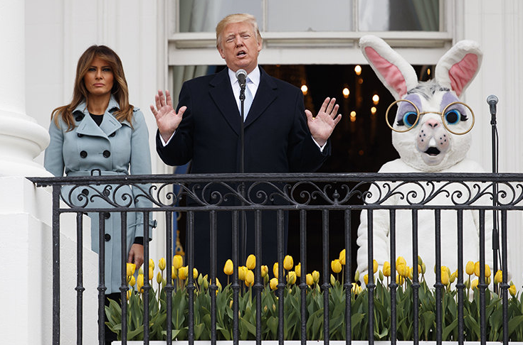 В традиционной программе были и соревнования по катанию яиц, чтение Меланией Трамп сказки для малышей в саду, торжественный парад и поздравительная речь президента с балкона рядом с гигантским пасхальным кроликом.