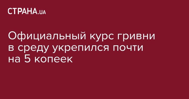 Официальный курс гривни в среду укрепился почти на 5 копеек