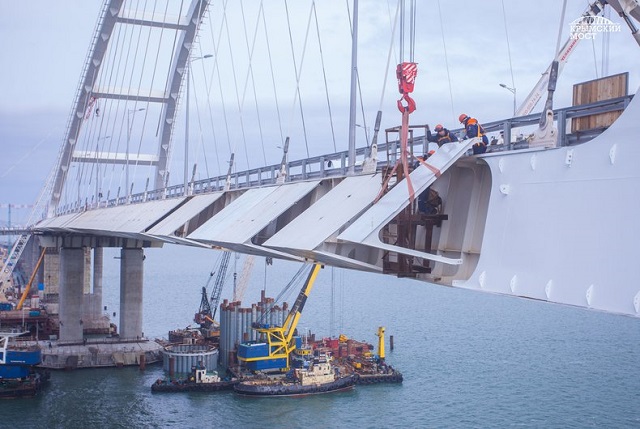 В сети появились свежие фото с места строительства Крымского моста, который должен соединить аннексированный Крым с территорией России.