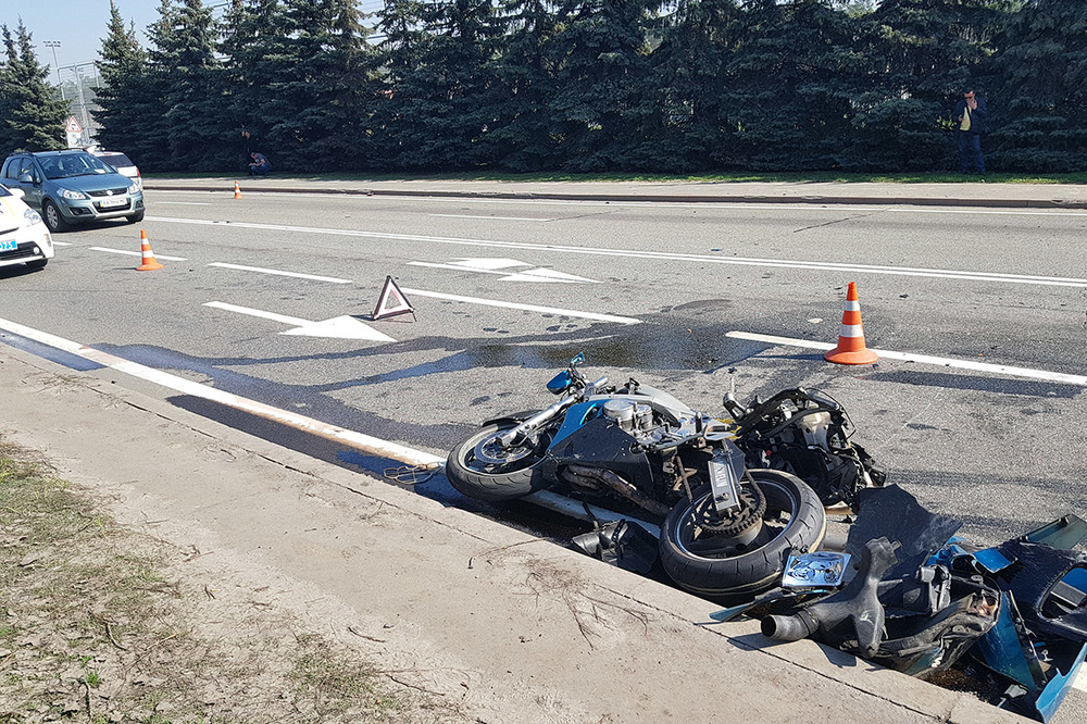 На скорости приблизительно 80-90 километров в час он пытался обогнать машины впереди, выехав на полосу встречного движения. Так он задел автомобиль Renault, а после этого от удара мотоцикл отскочил в Toyota, которая двигалась в направлении Киева. А после, двухколесный транспорт с водителем въехал в бордюр на стороне движения в сторону Обухова. Бензобак, который отлетел от мотоцикла, разбил переднюю часть Ford.