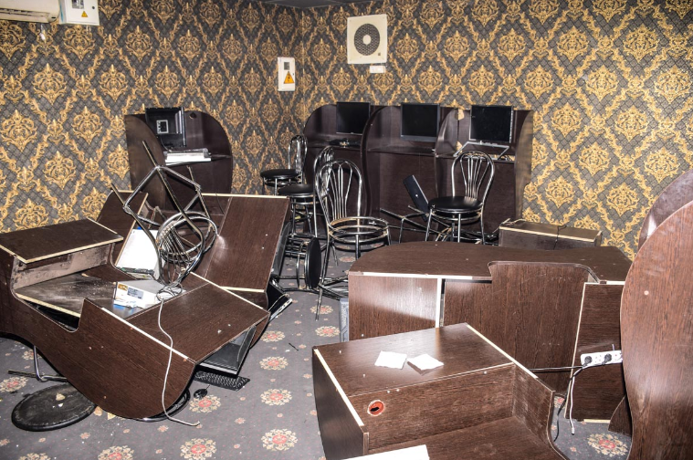 В ночь на 12 апреля на улице Привокзальной в Киеве группа неизвестных разгромила несколько игорных заведений.