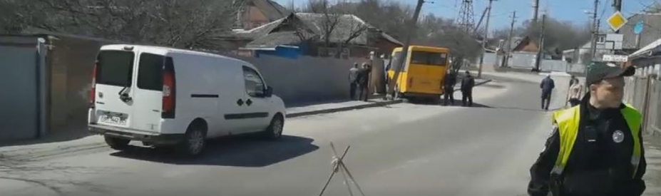В Сумах водитель маршрутки "Рута" наехал колесом на открытый люк, после чего машина потеряла управляемость и врезалась в электроопору, также повредив забор дома.