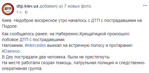 В воскресенье, 15 апреля, в Киеве на Подоле произошло ДТП с участием автомобилей Mercedes и Daewoo Lanos.