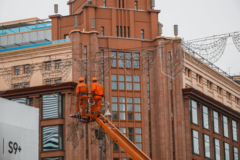 В Киеве на Крещатике коммунальщики при помощи спецтехники начали монтаж новой иллюминации. Об этом сообщает портал Информатор.