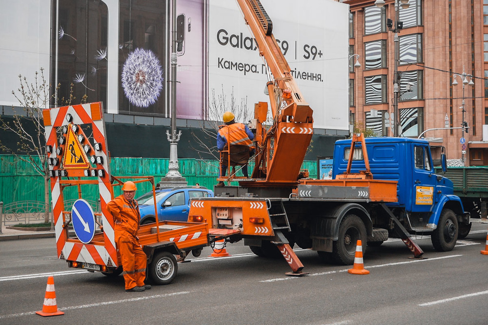 С самого утра вторника, 17 апреля, спецтехнка частично перекрыла одну из полос движения, передвигаясь в сторону Майдана Незалежности по мере продвижения работ. Новые украшения будут висеть там до осени.