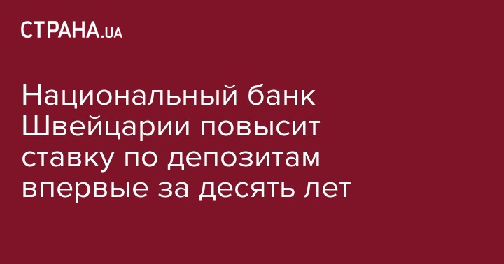 Национальный банк Швейцарии повысит ставку по депозитам впервые за десять лет