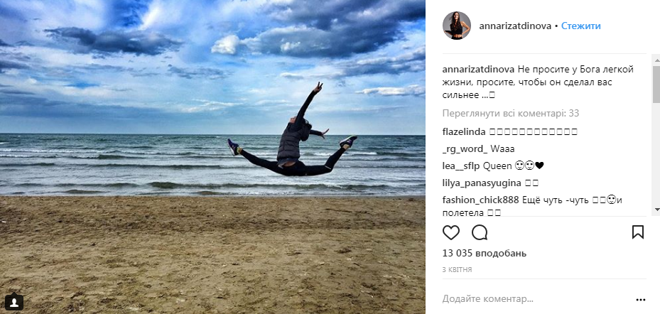 Гимнастка сейчас где-то около океана. С ней ли рядом ее муж- опальный депутат Александр Онищенко - неизвестно. Вместе пара показывается крайне редко.