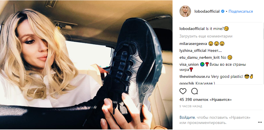 На снимке певица запечатлена держащей в руке ногу в кроссовке.