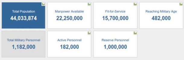 Как видно, первые места в рейтинге занимают страны с большим населением. Global Firepower насчитали в Украине 44 миллиона.