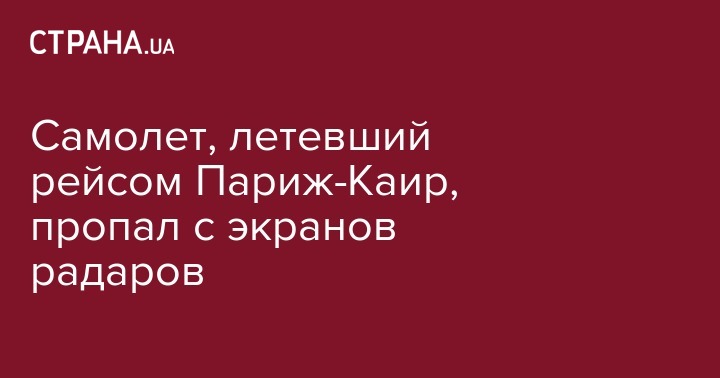 По предварительной информации, пассажирский самолет, принадлежащий египетской авиакомпании EgyptAir и следовавший из Парижа в Каир, пропал с экранов радаров. Об этом стало известно в четверг, 19 мая, по сообщению ЛентыРу со ссылкой на египетский новостной портал Youm7.
