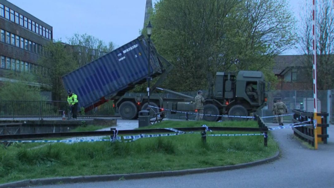 Рано утром в город прибыли военные грузовики. Солдаты разгрузили два металлических контейнера и небольшой трактор возле торгового центра, на скамейке у которого в начале марта обнаружили Срипаля и его дочь без сознания.