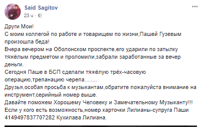 Об этом рассказал друг потерпевшего Саид Сагитов на своей странице в Facebook.