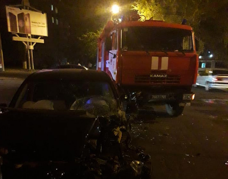 В Одессе пожарная машина смяла в ДТП электромобиль Nissan