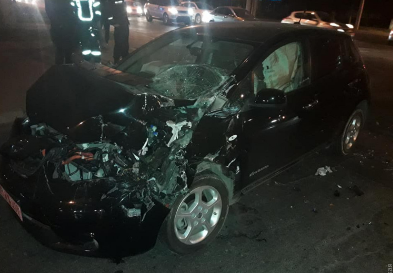 В Одессе пожарная машина столкнулась с электромобилем Nissan Leaf.