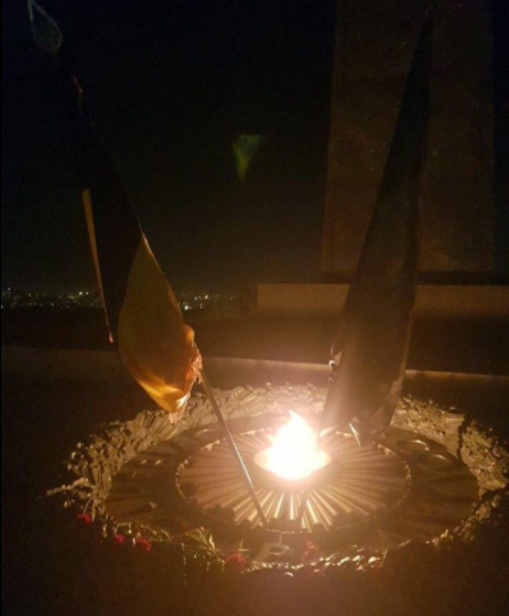 В Киеве в Вечный огонь воткнули флаги Украины и ветеранов АТО